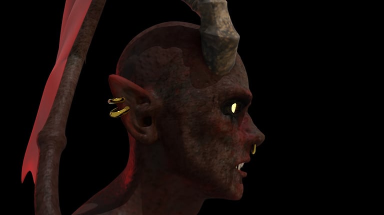 The Imp is a lesser demon, so I wanted a sleek, simple design. To express himself a little, his model received piercings.