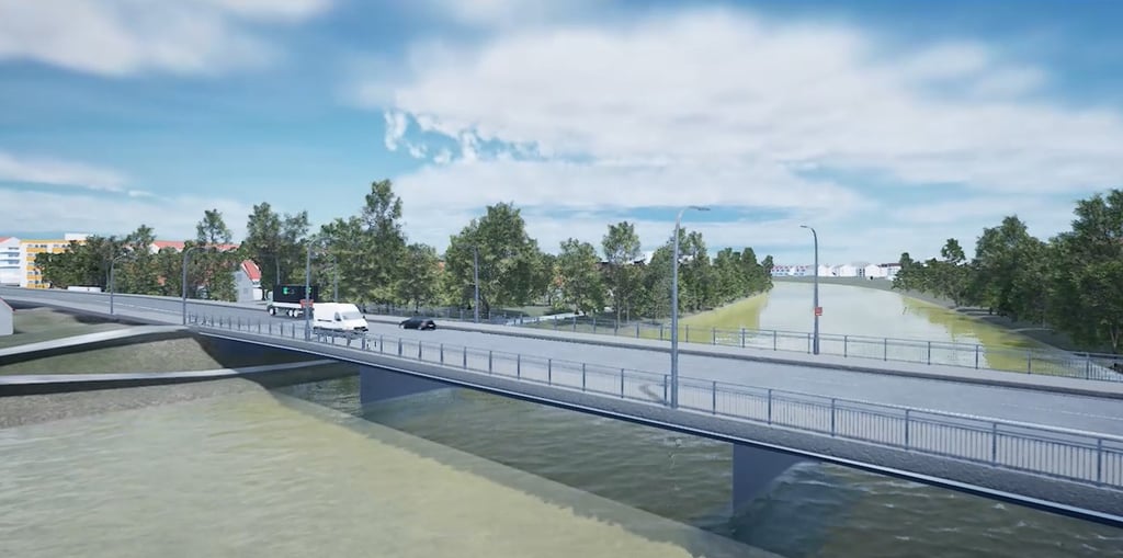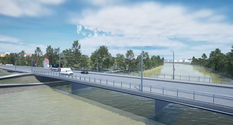 During my internship semester at Kleeblatt Medien, image retouching and the integration of rendered 3D models into photos were were among my main responsibilities. Here, a bypass bridge created in Blender was inserted into panorama drone shots.
